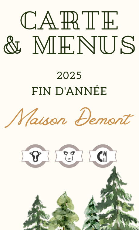 Notre carte et nos menus pour les fêtes de fin d'année 2025 sont disponibles en cliquant sur le bouton "Téléchargez la carte des fêtes 2025"